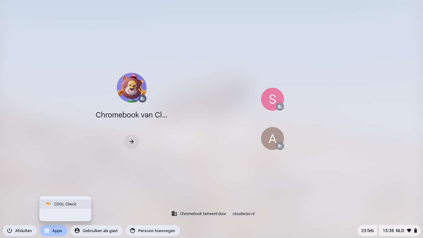 - Op het inlogscherm klikt de leerling op Apps en dan op COOL Check.